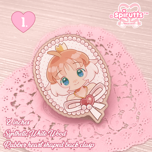 PIN(s)/BROACHES(s) - classic Magical Girls - Wood finish/Pink heart rubber pinback