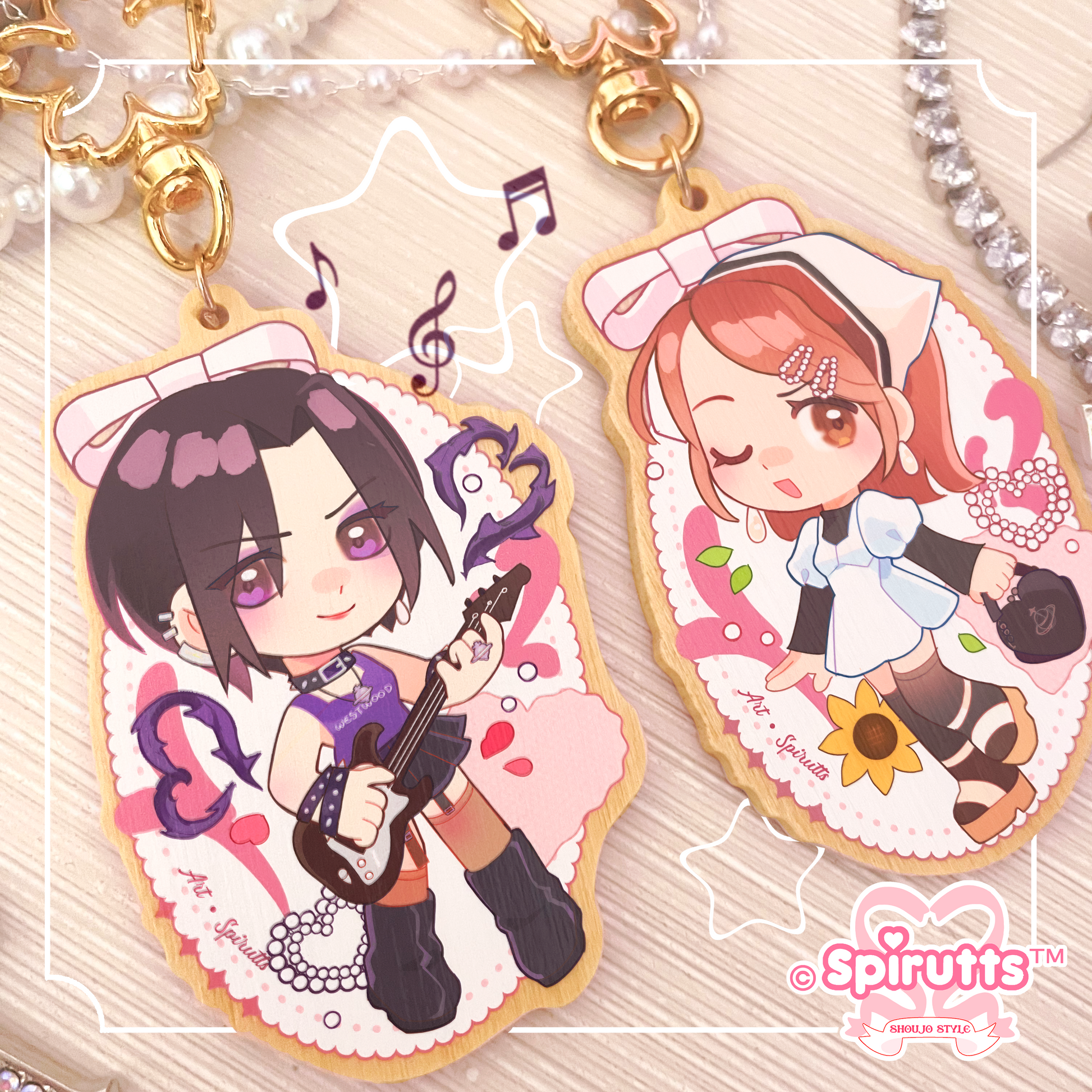 KEYCHAIN(S) - Nana / Retro Anime / punk / couples accessory - Double-sided wooden charm/Matching Pair/Gold clip attachments