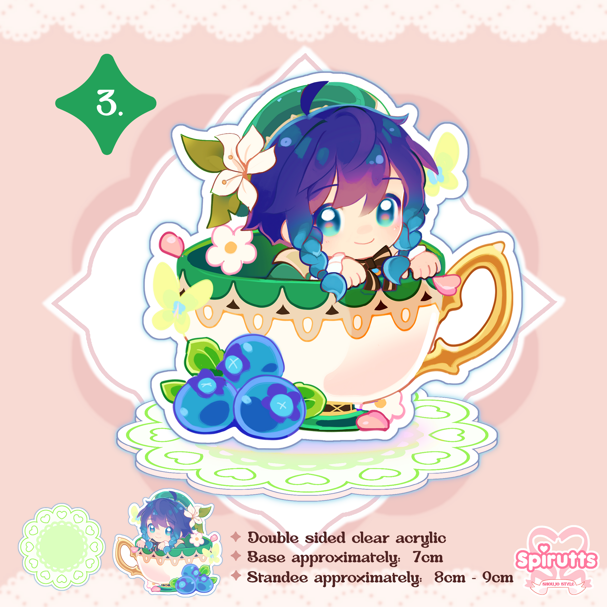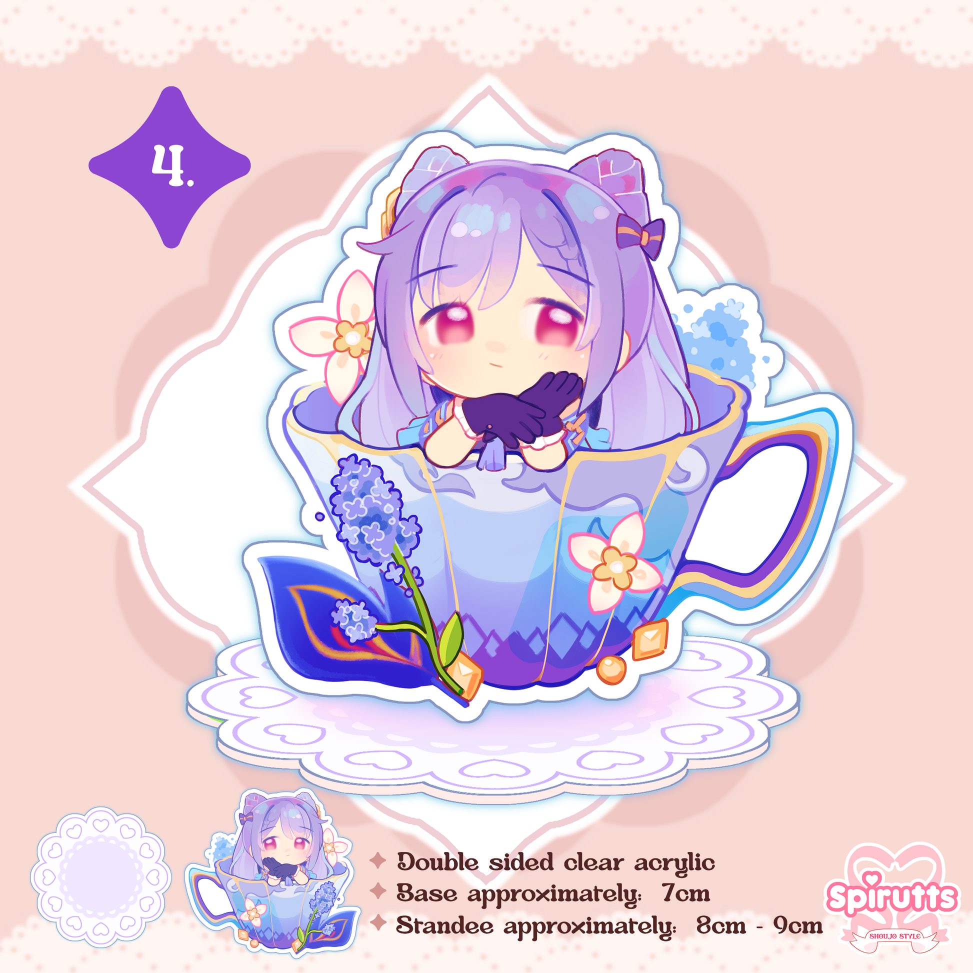 ACRYLIC FIGURE(s) / GenshinTeacup character designs! - double-sided acrylic / Frill shaped base