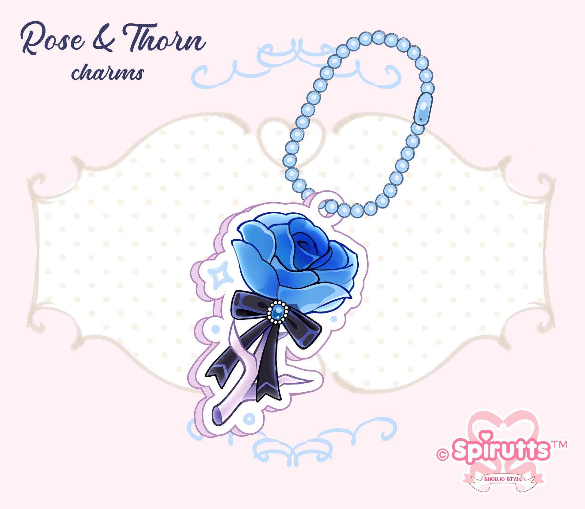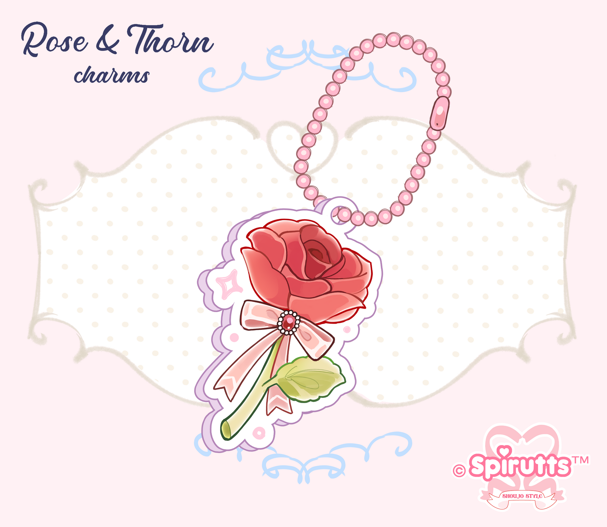 CHARMS COLLECTION - Rose & Thorn - Double-sided acrylic/ball chain-strap/bow accessory