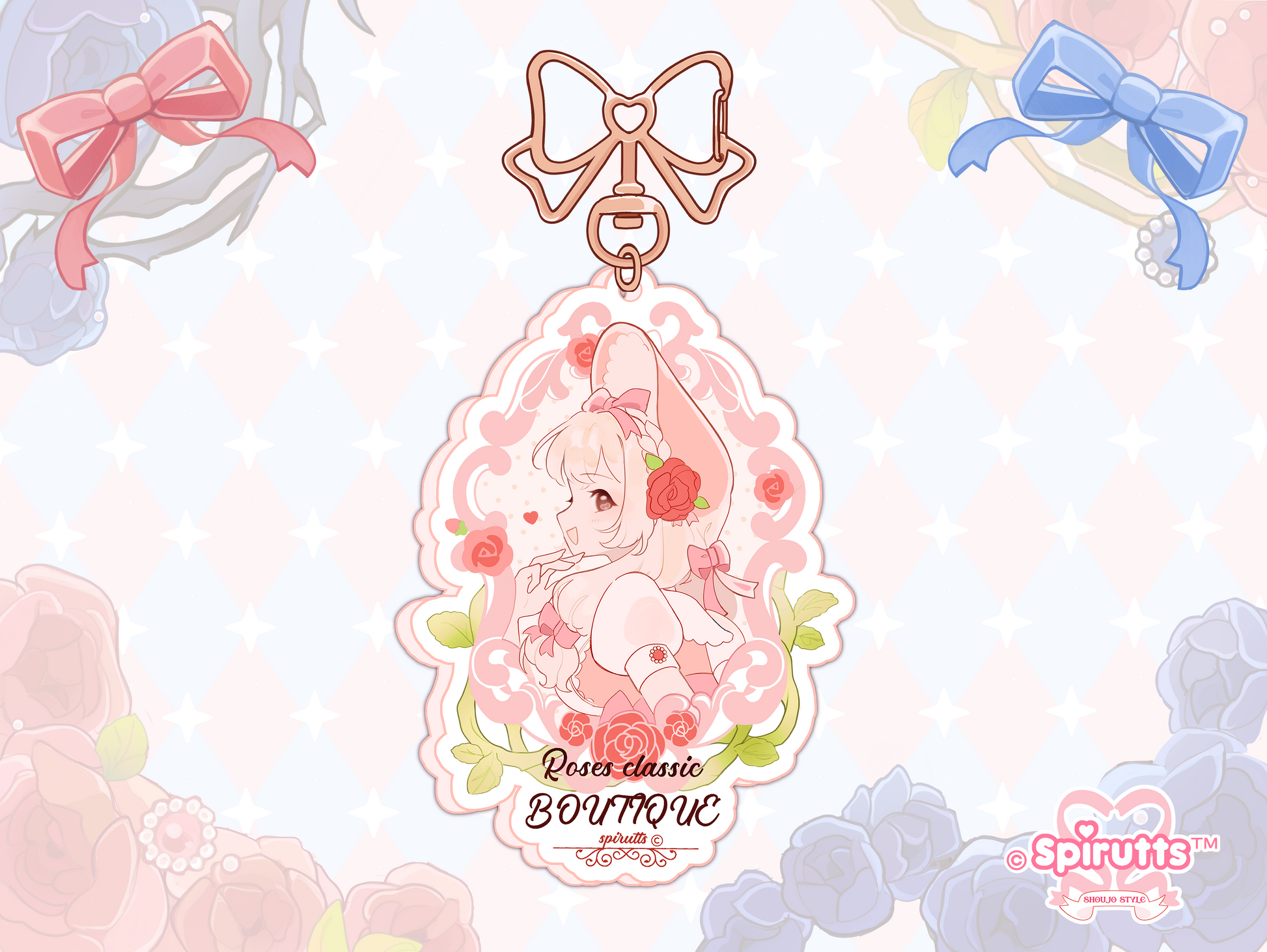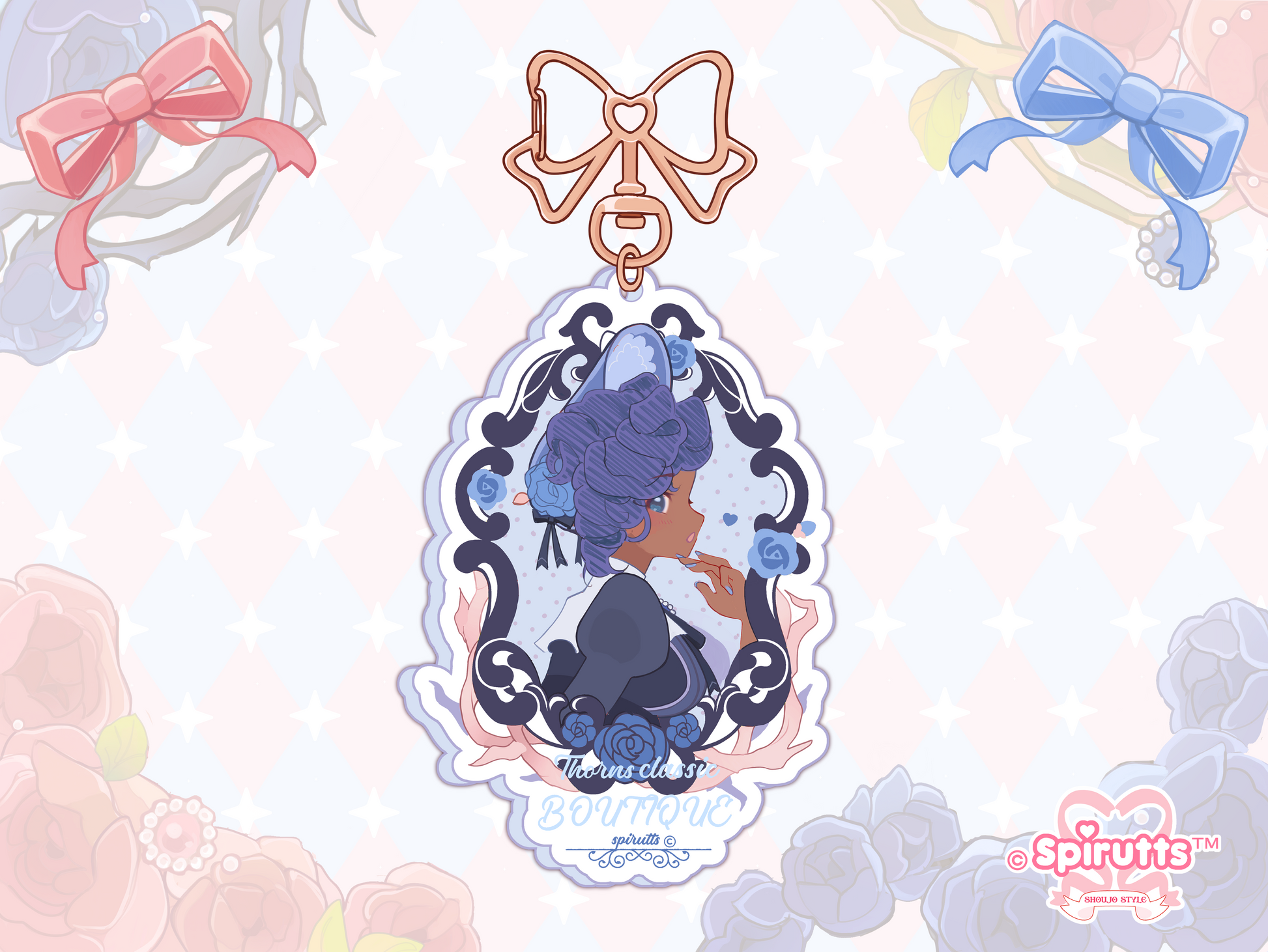 KEYCHAIN(S) - Rose & Thorn! - Double-sided acrylic/Bow-shaped Gold Chain/Charm