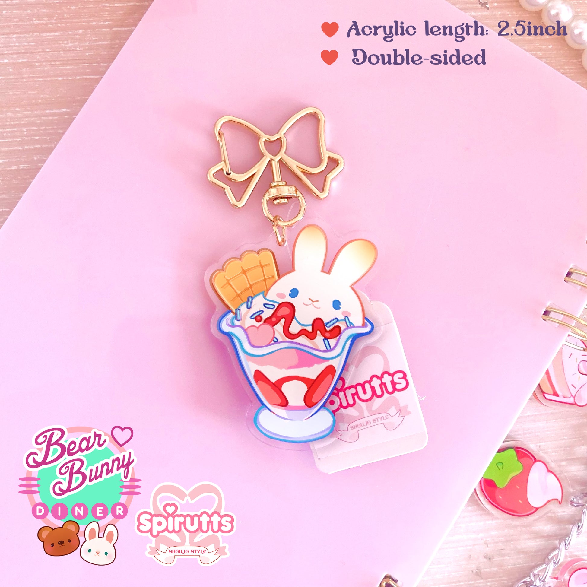 KEYCHAIN - Bunny icecream - Double-sided acrylic/Bow Gold Clip Chain