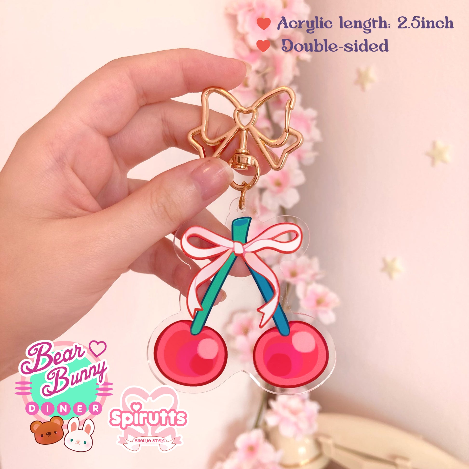 KEYCHAIN - pretty please with a Cherry on top~! - Double-sided acrylic/Bow Gold Clip Chain