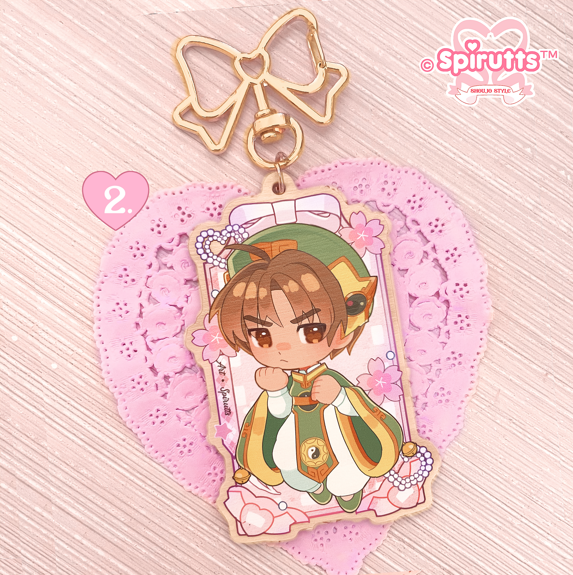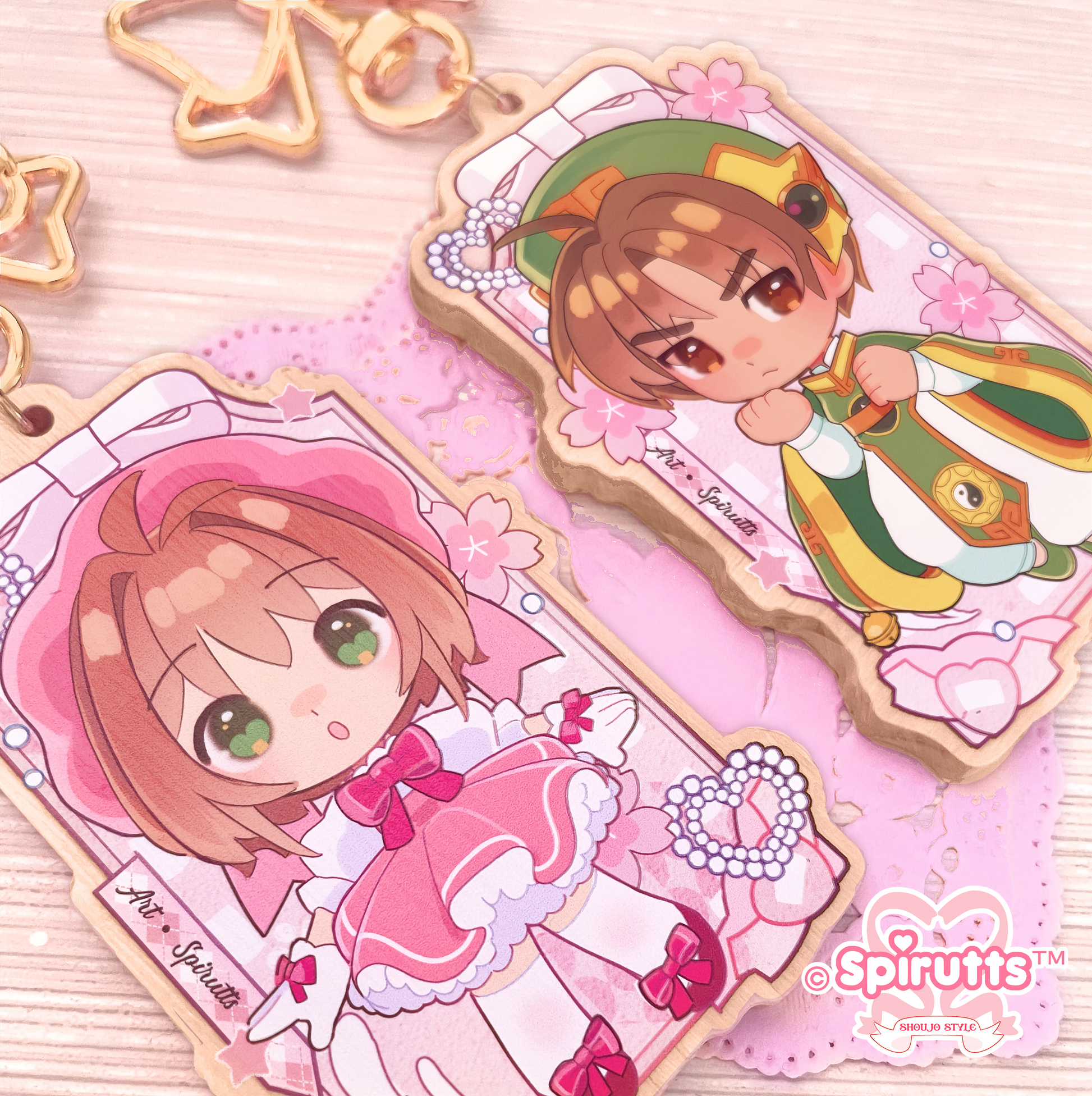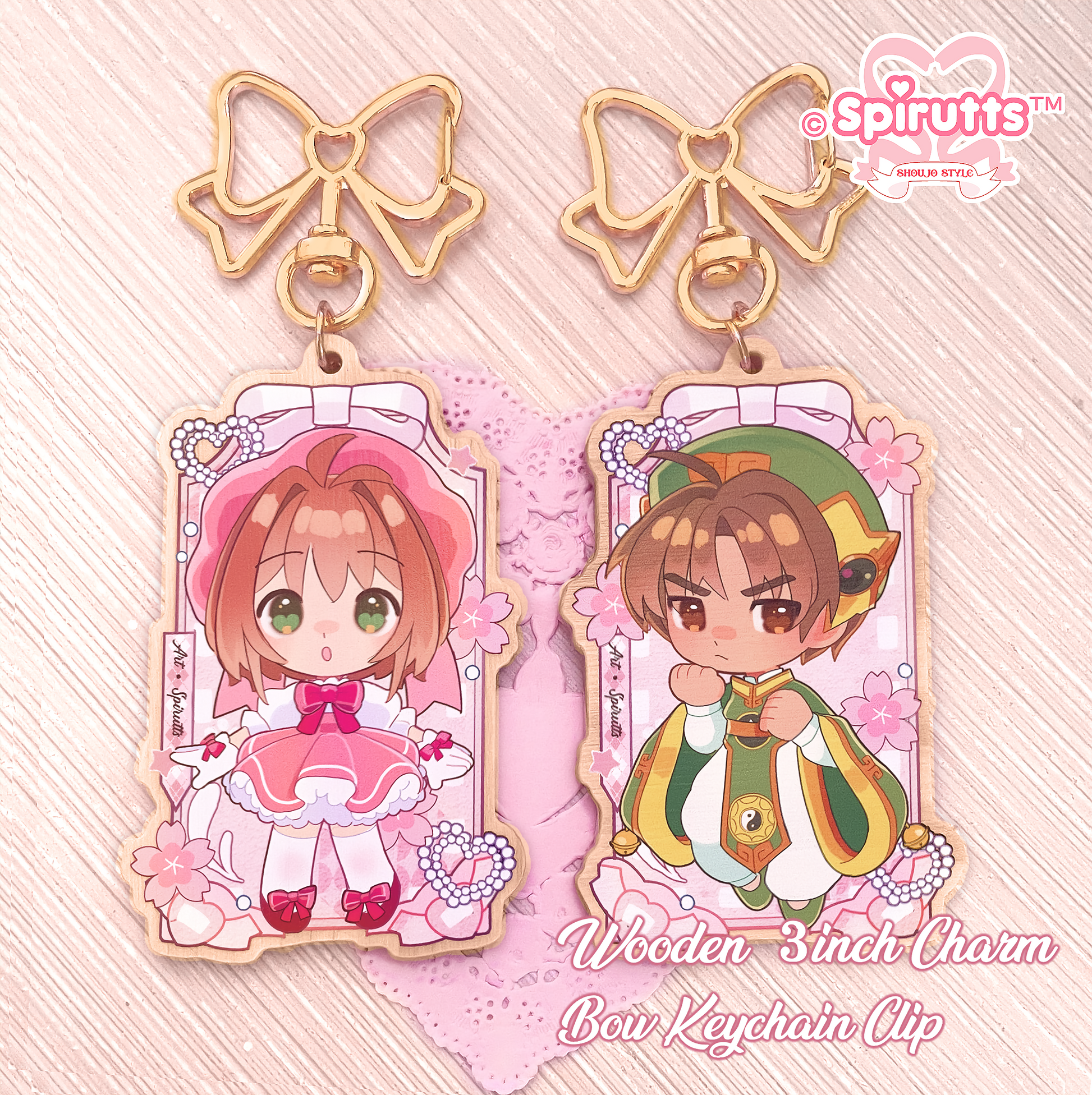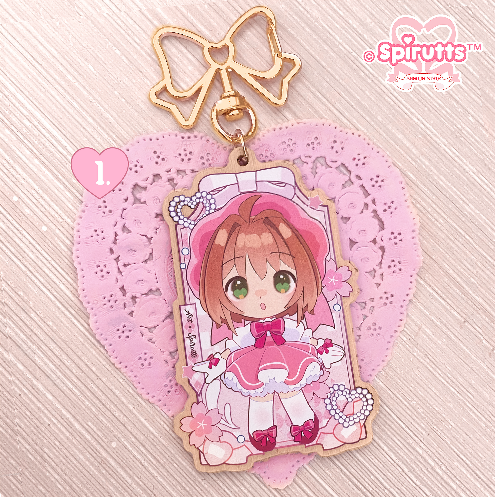 KEYCHAIN(S) - Captor Sakura/Magical Girl/Anime/Pink/Retro - Double-sided wooden charm/Matching Pair/Gold clip attachments