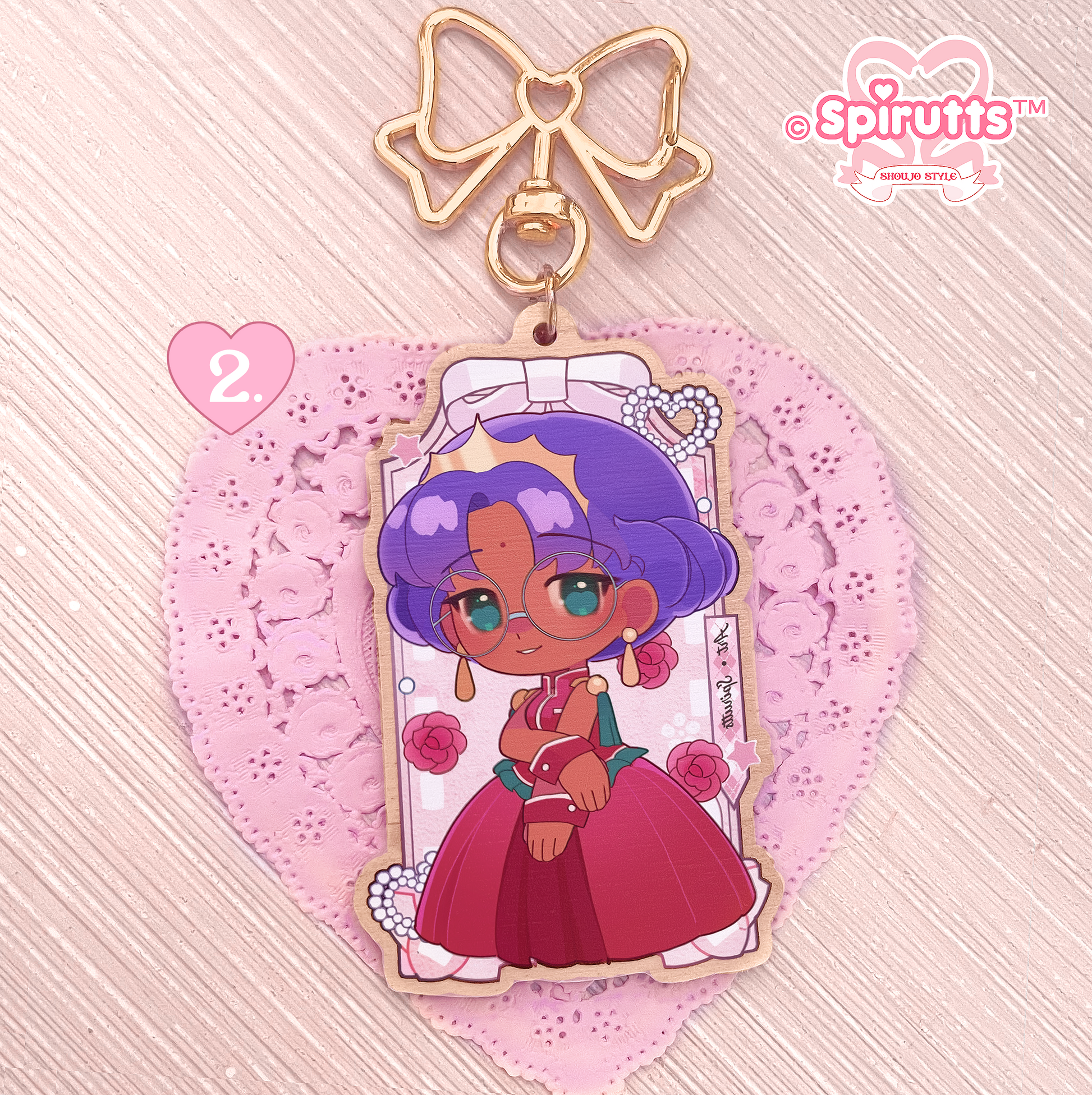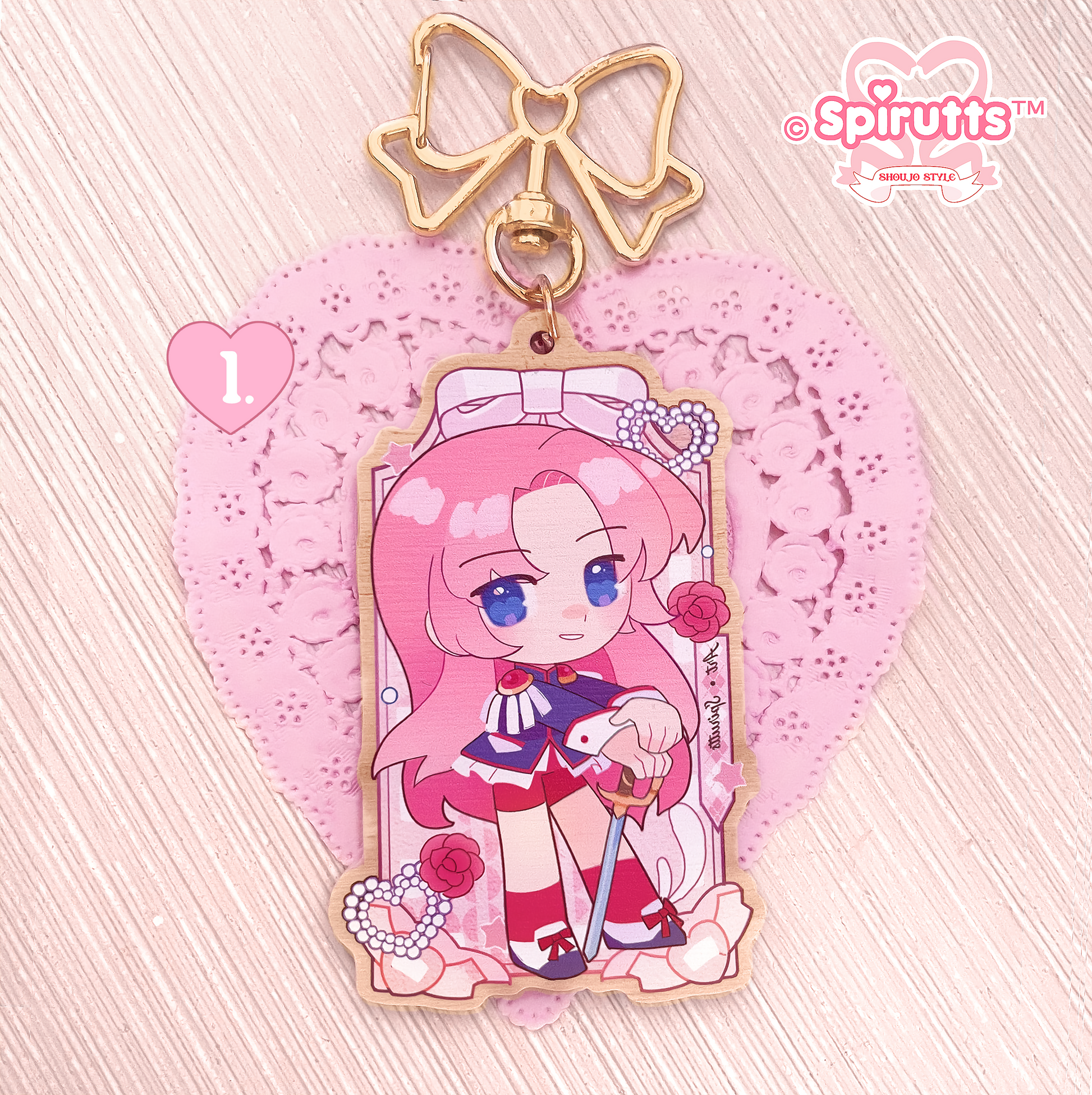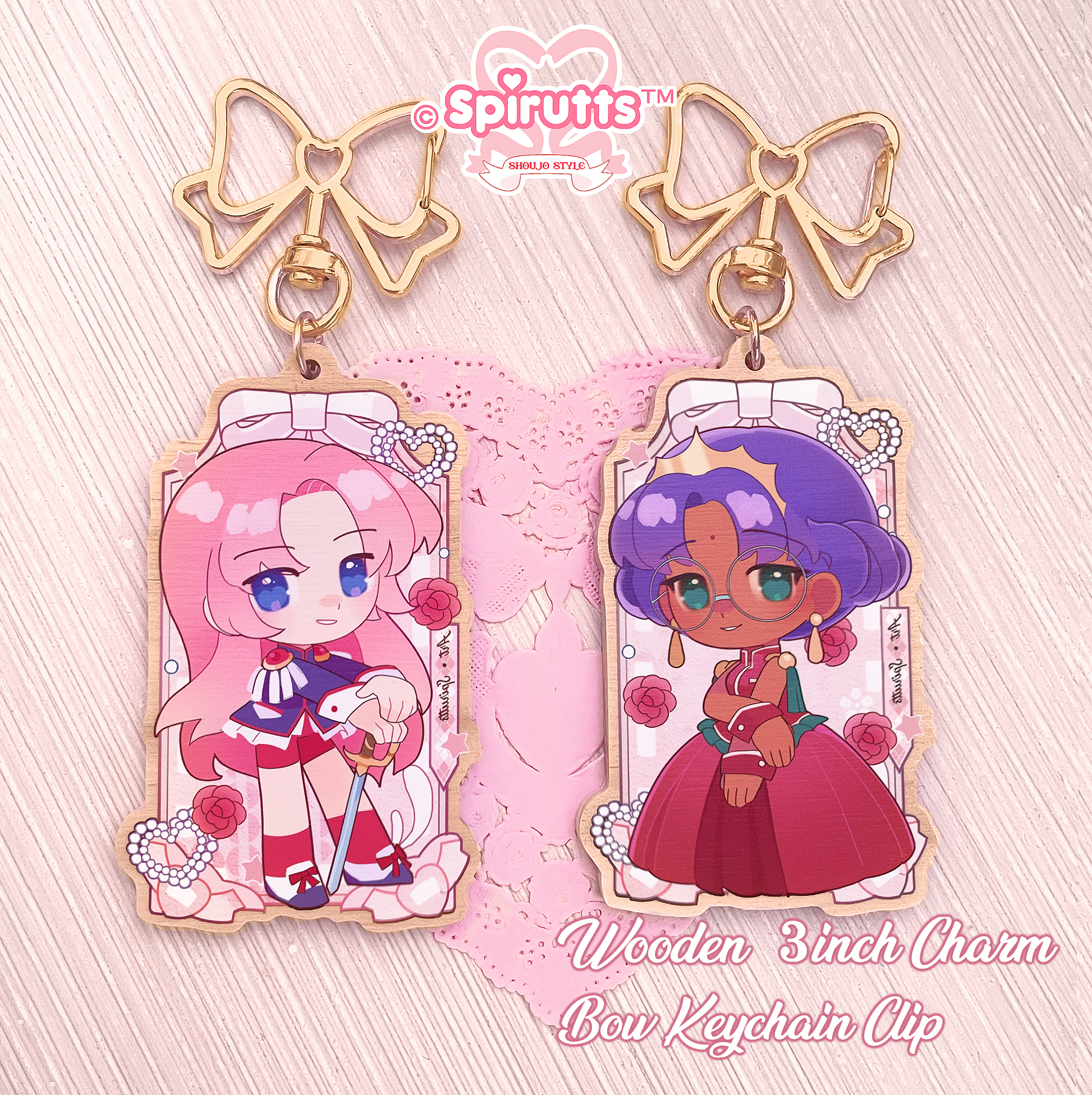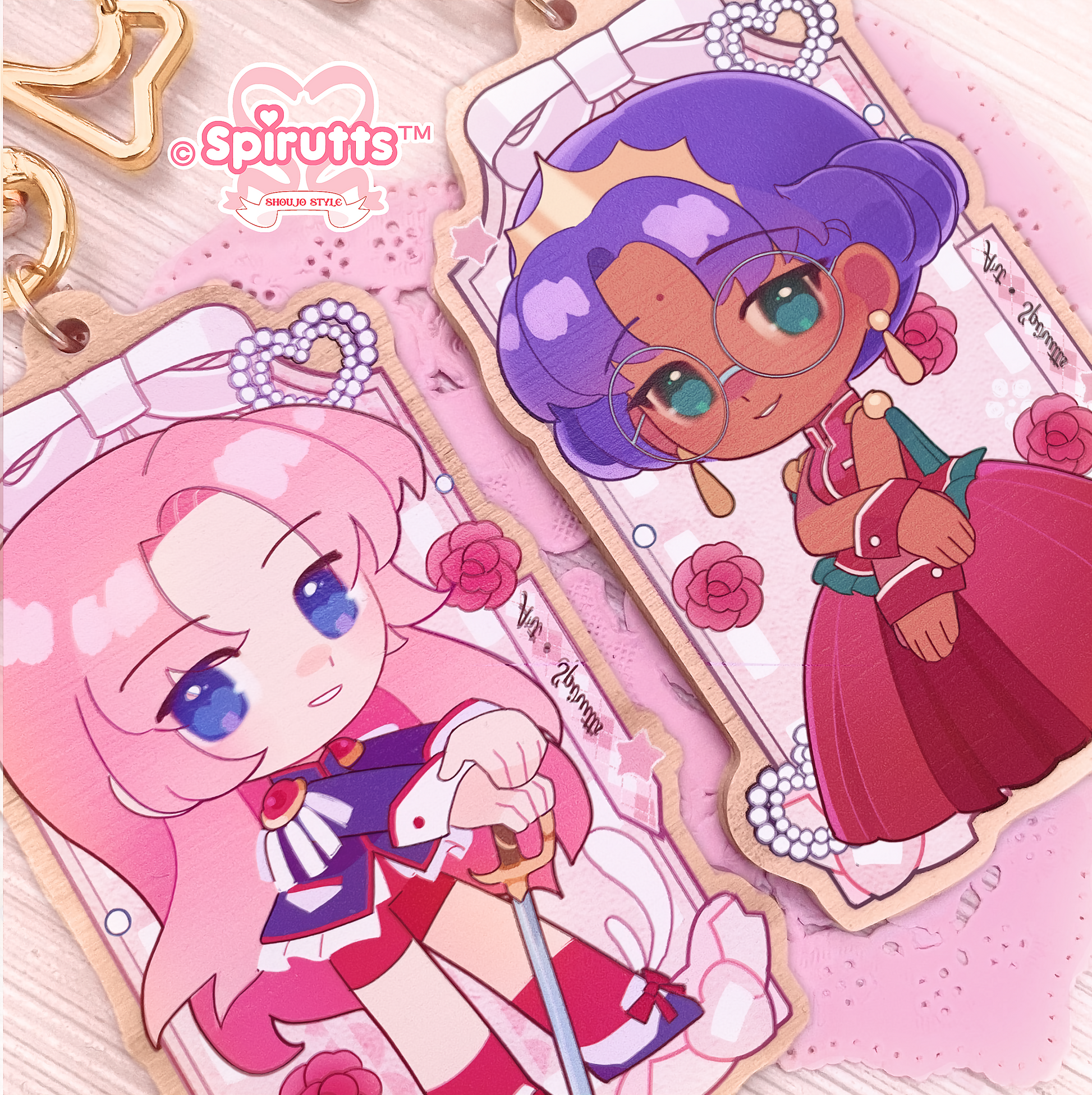 KEYCHAIN(S) - Princess Anthy and Utena / Anime / retro / Magical girls - Double-sided wooden charm/Matching Pair/Gold clip attachments