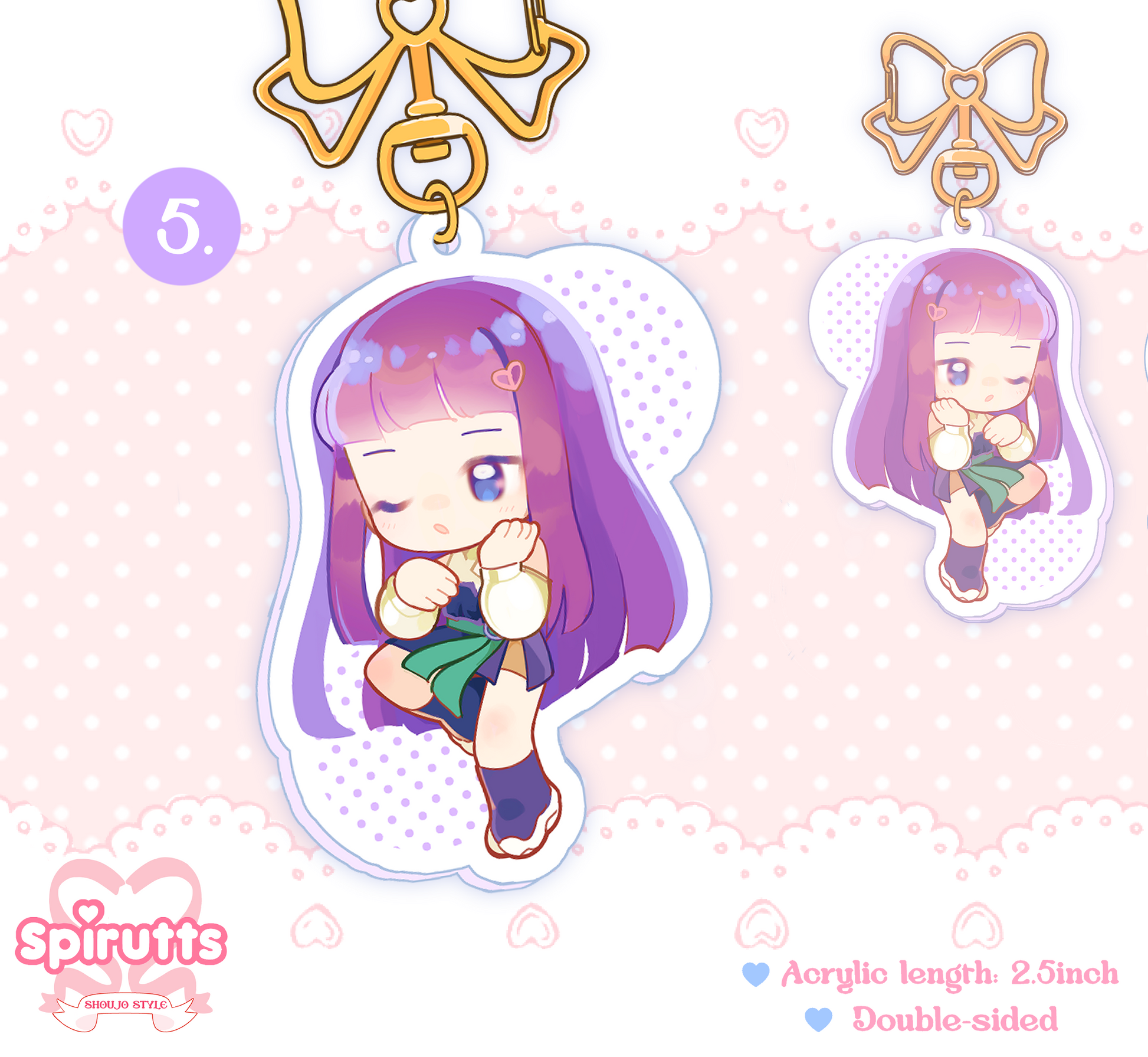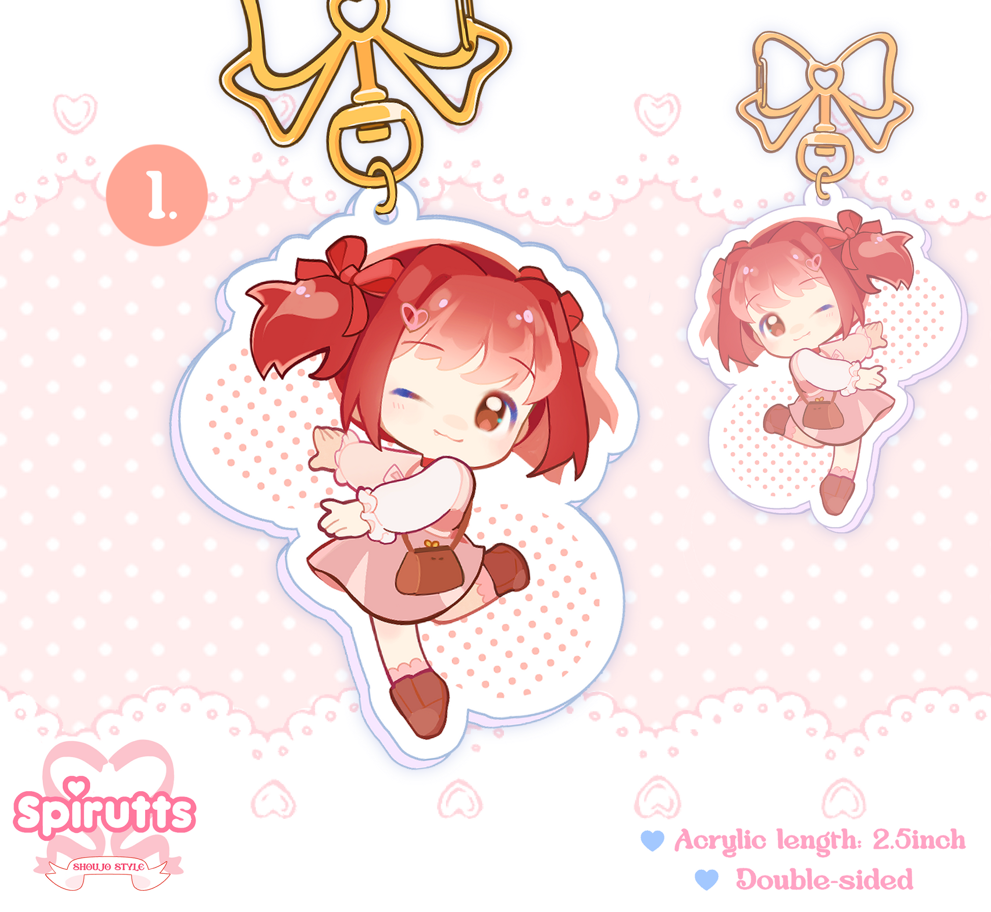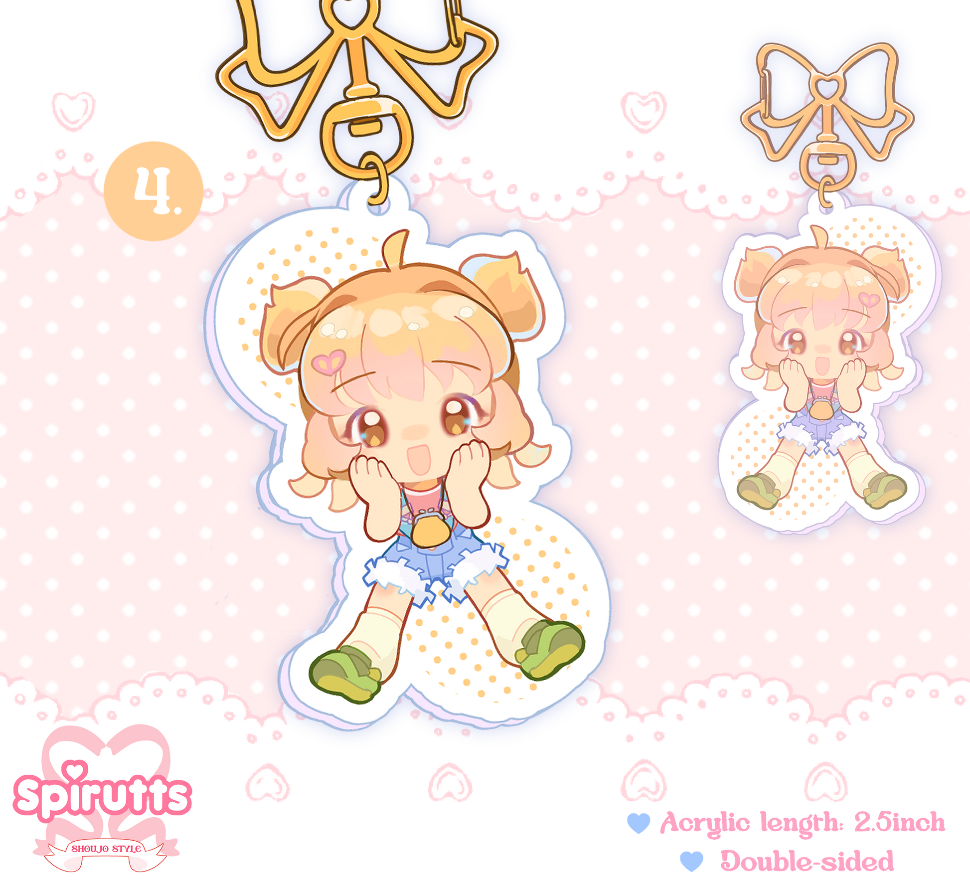 KEYCHAIN(S) - Mew girls! - Double-sided acrylic/Bow-shaped Gold Chain/Charm