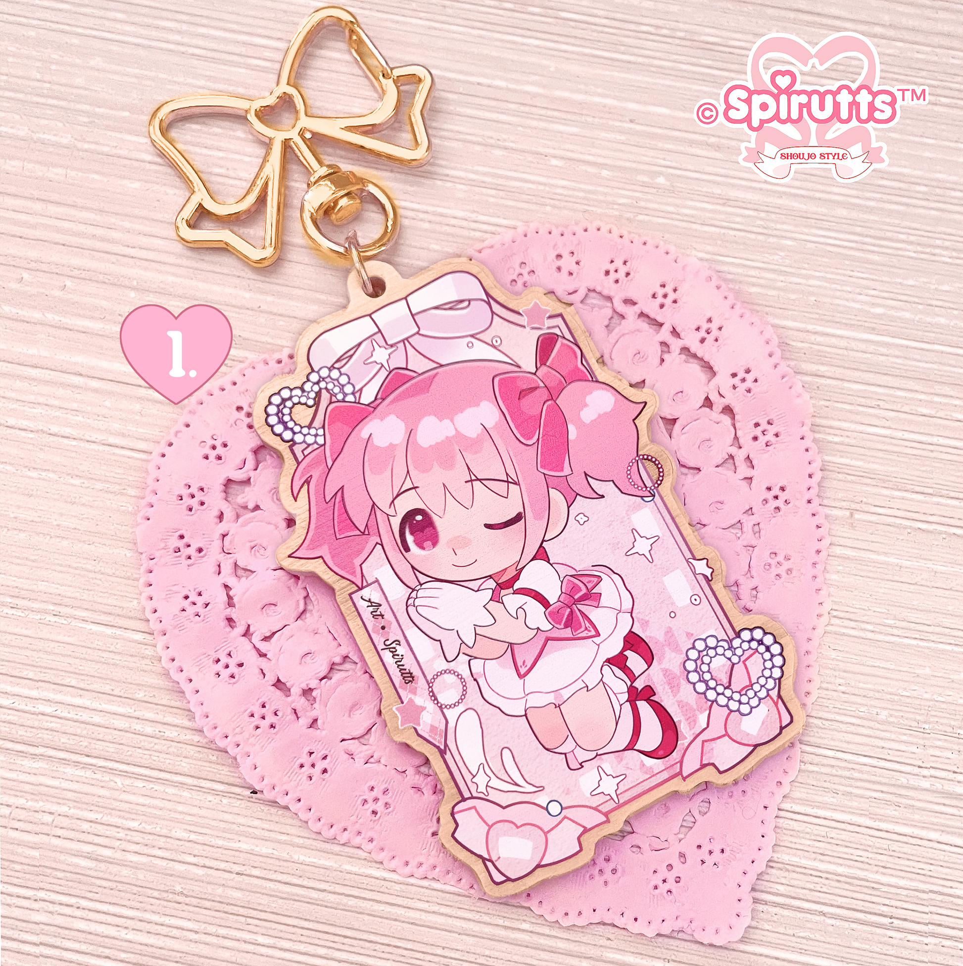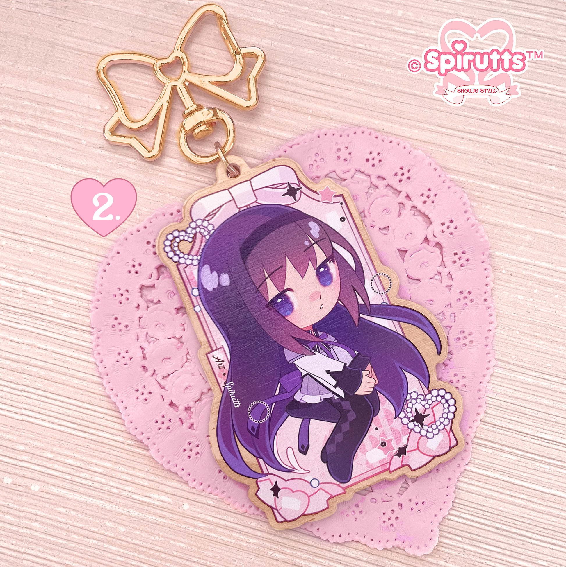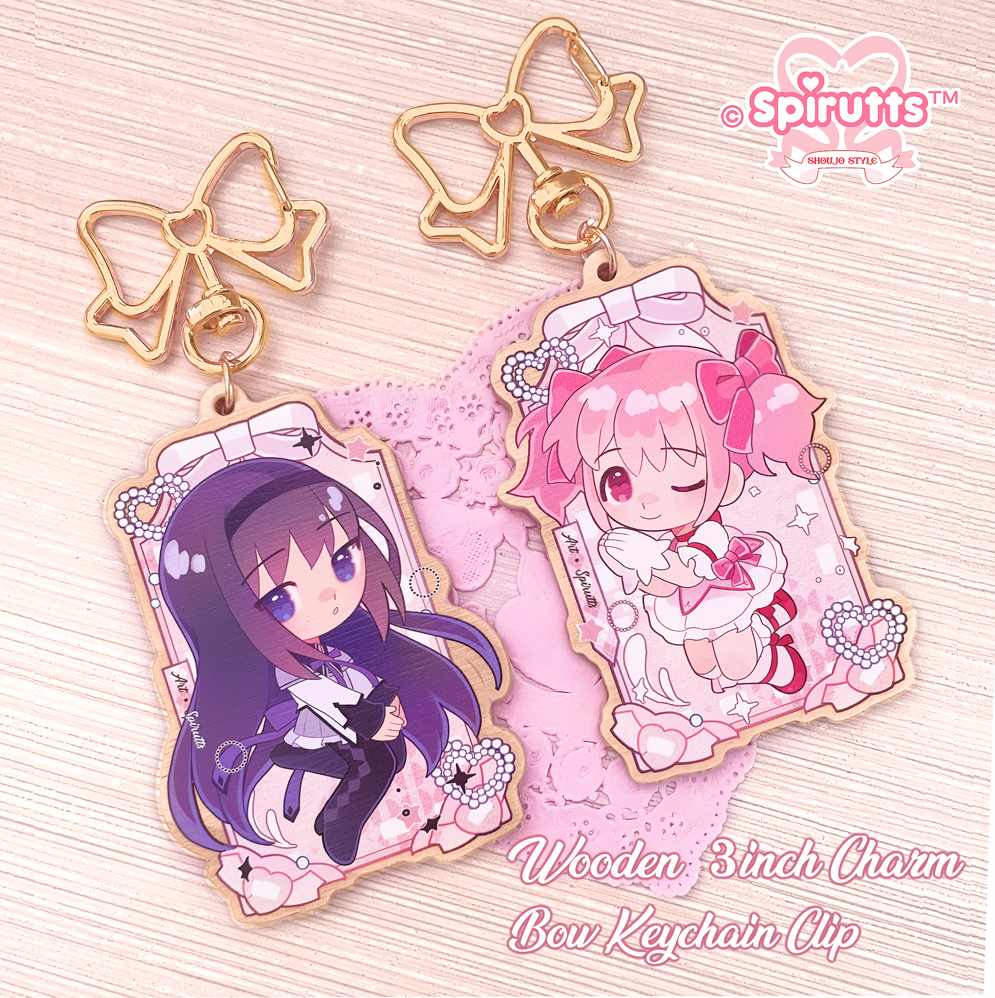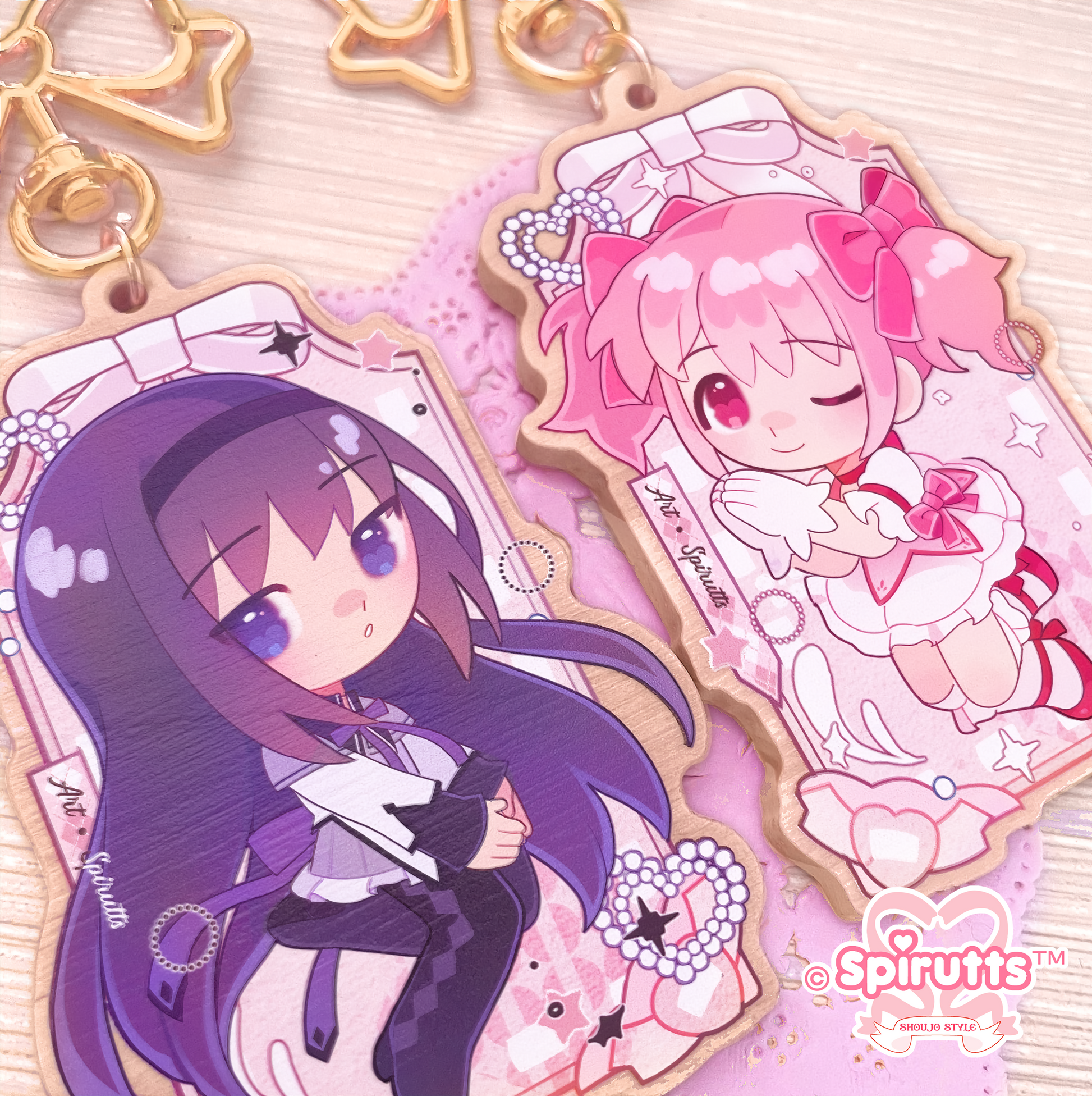 KEYCHAIN(S) - Mahou Magica couple - Double-sided wooden charm/Matching Pair/Gold clip attachments