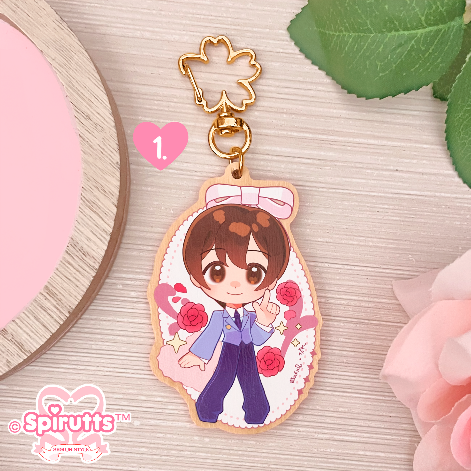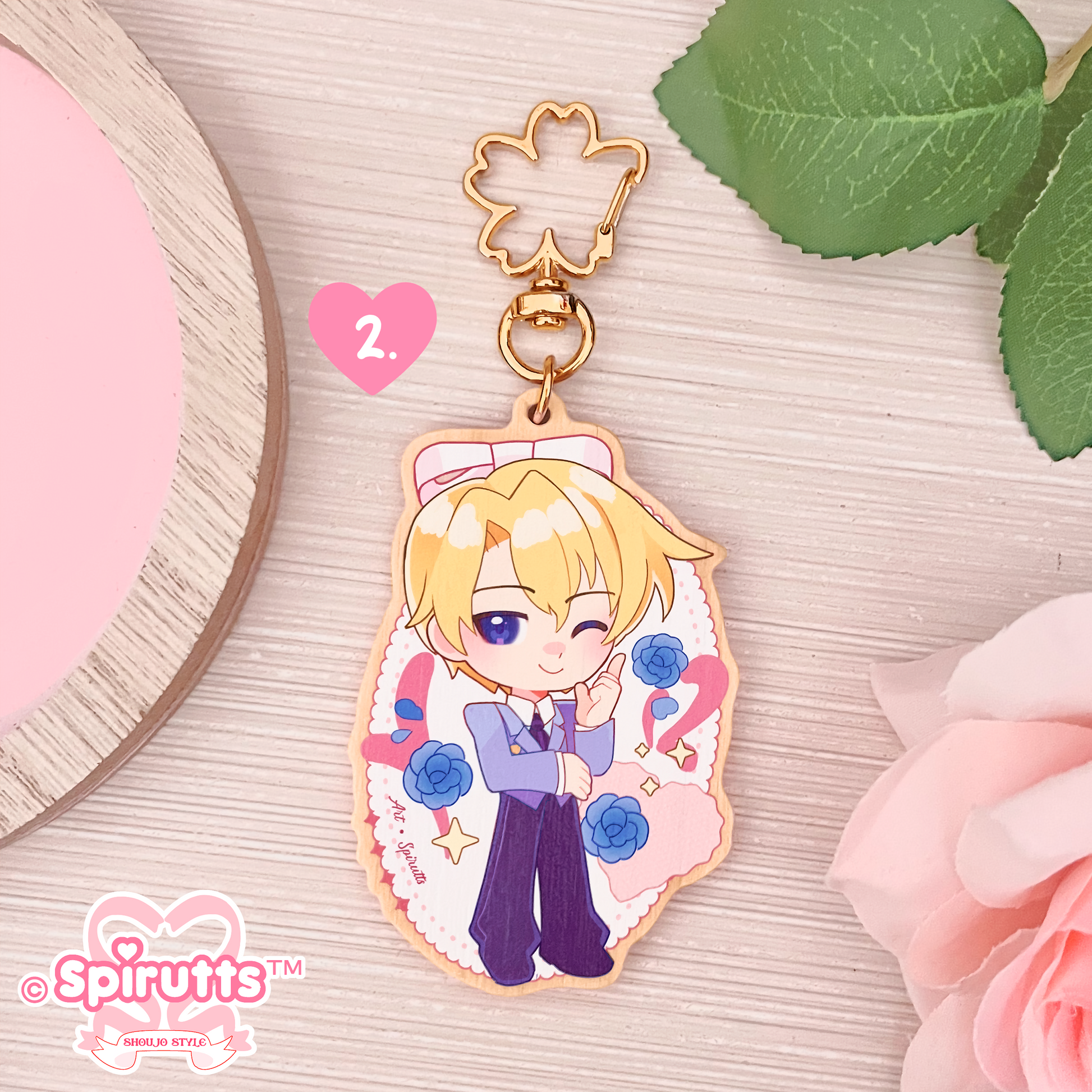 KEYCHAIN(S) - "Welcome to the Host Club~" - / Retro Anime / Matching Pair / Double-sided wooden charm/ Gold clip attachments