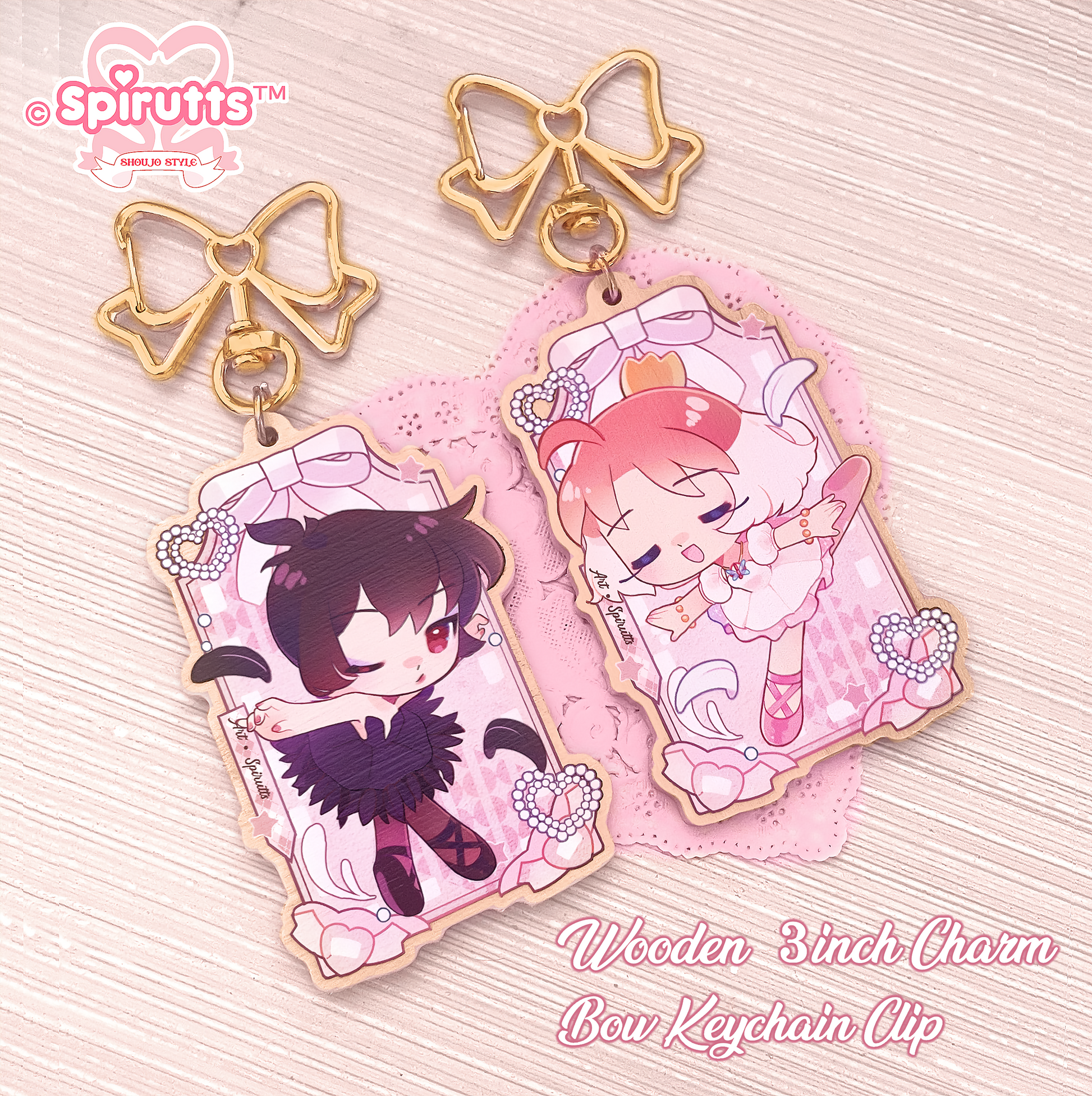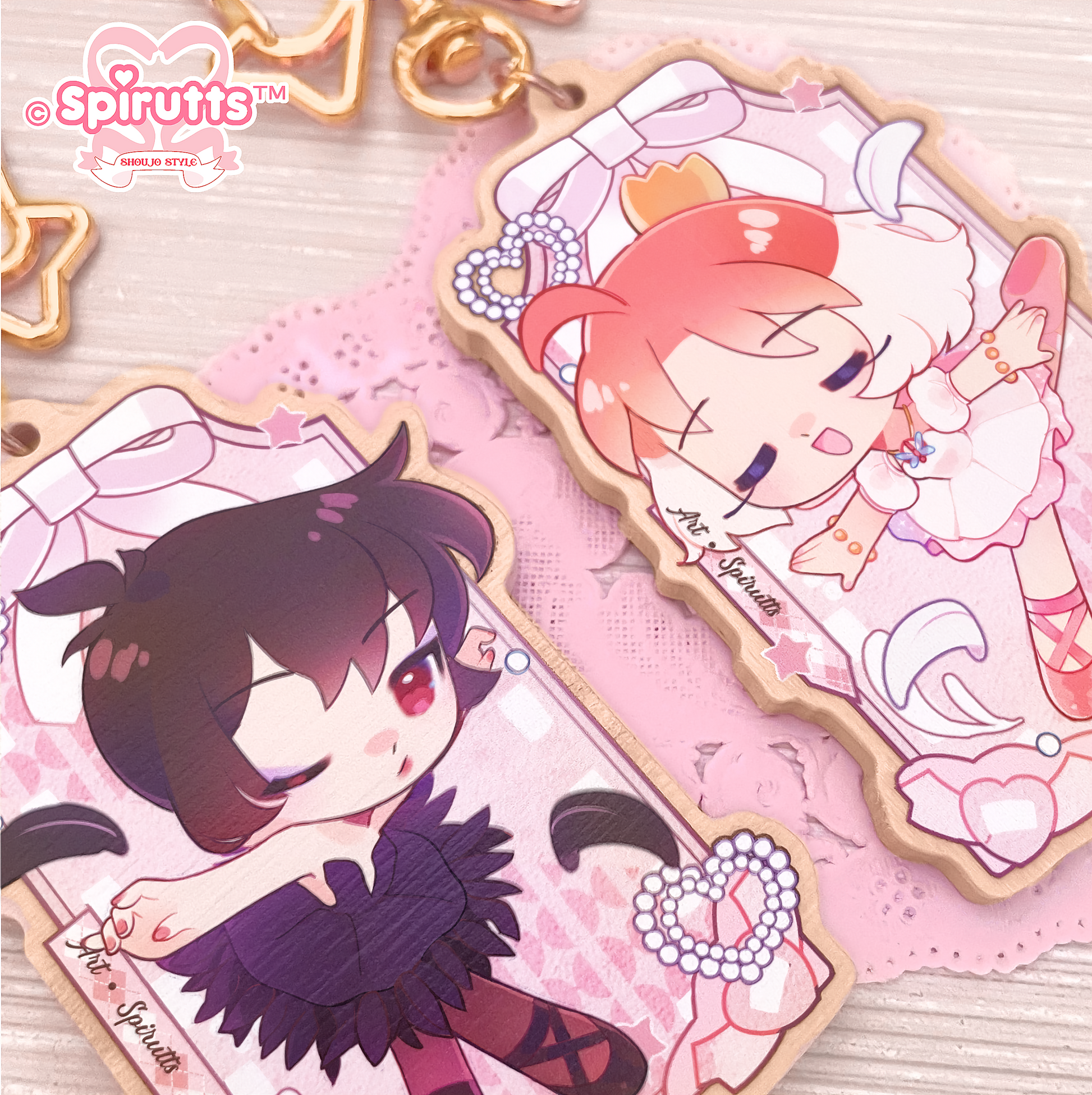 KEYCHAIN(S) - Princess Tutu / Anime / Swan Lake / Retro ballet magical girl - Double-sided wooden charm/Matching Pair/Gold clip attachments