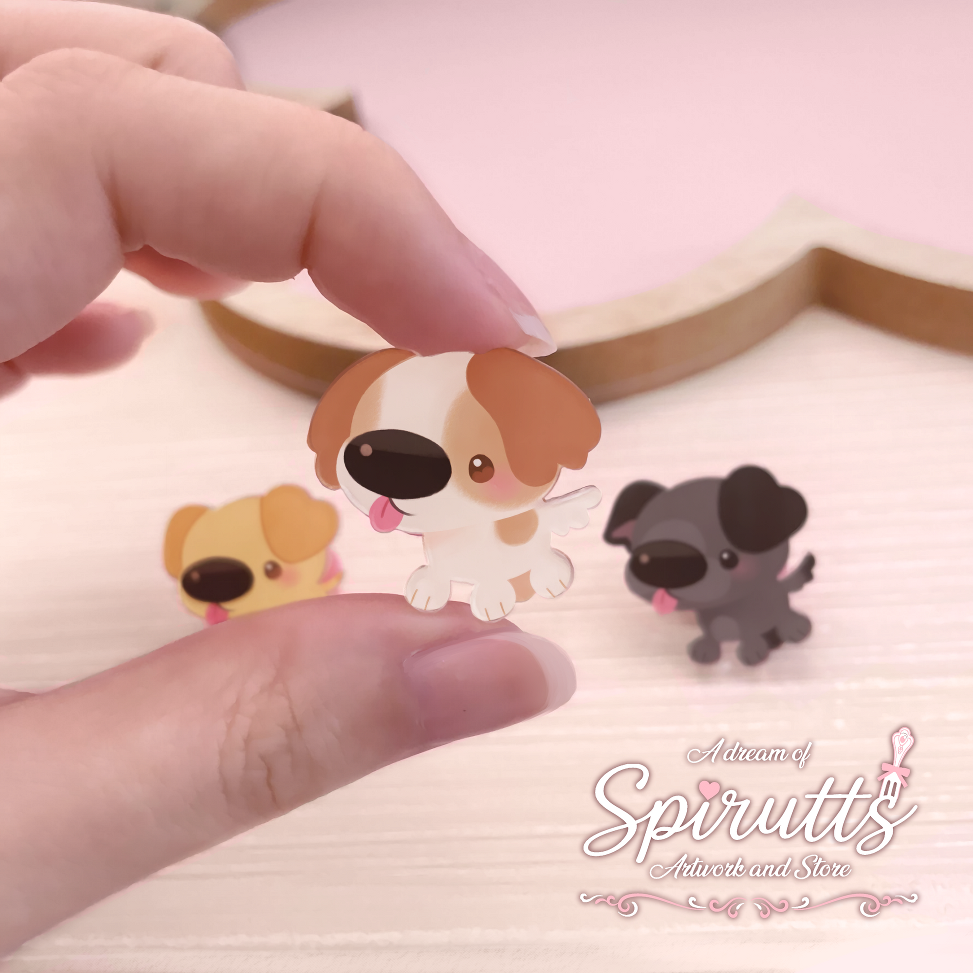 mini PIN(S) - Dogs! - Acrylic Pins with Pink heart rubber back