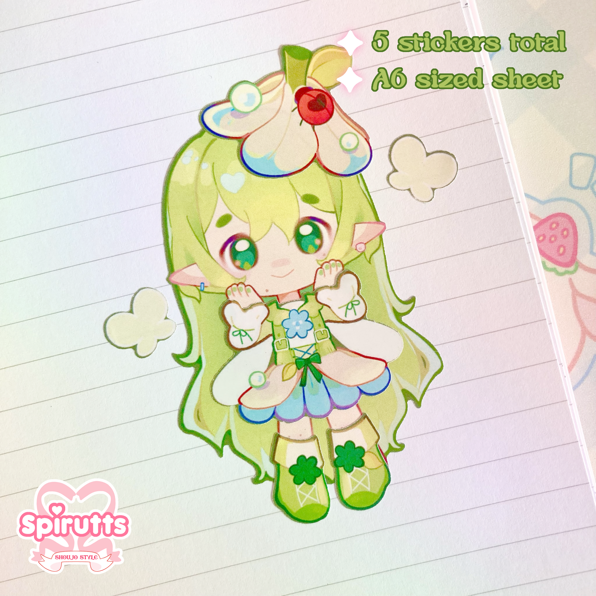 - There are 5 stickers in total, 1 large character sticker and 5 smaller clothing/accessory stickers.