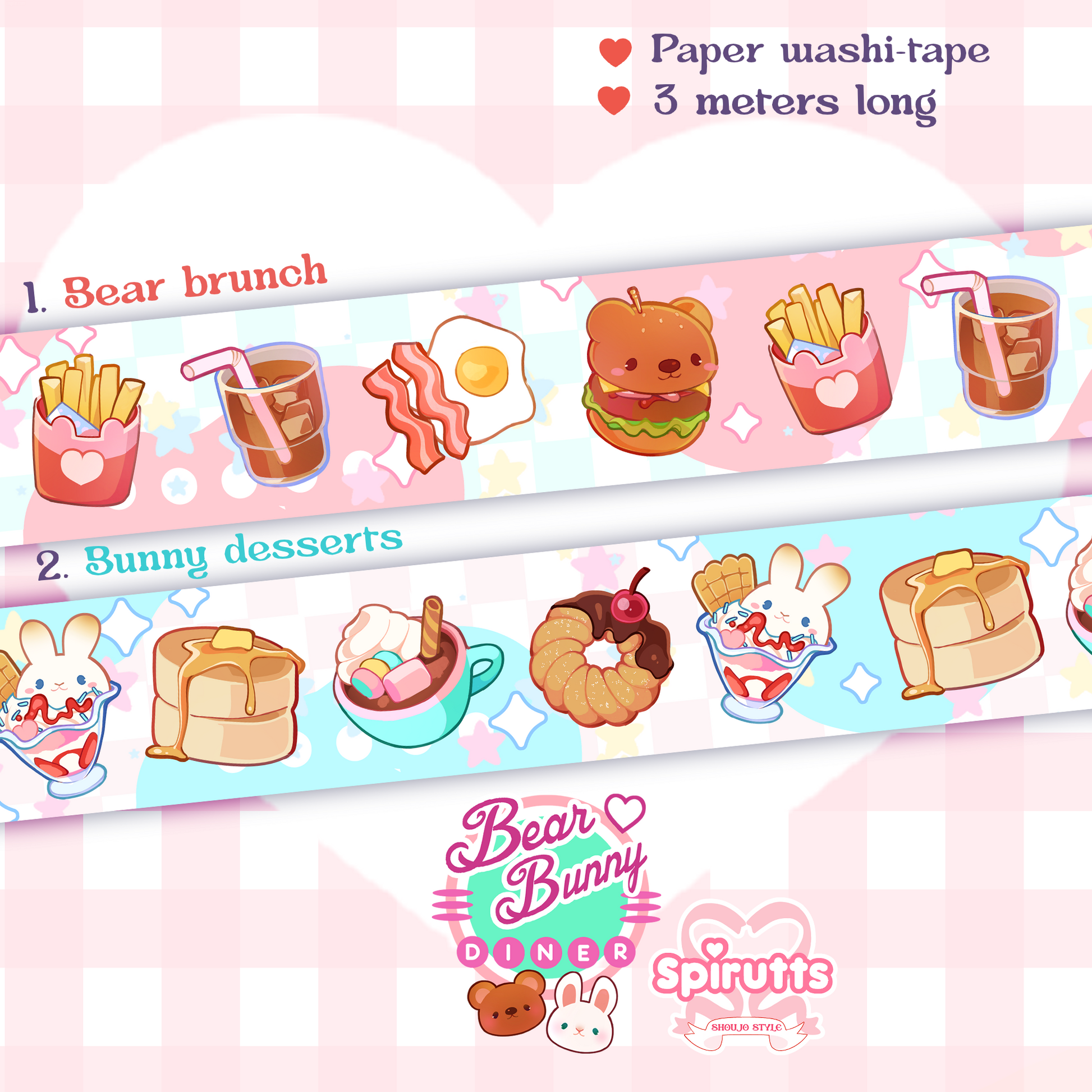 WASHI-TAPES(S) - Bear & Bunny foods~! - Paper washi-tapes / 3 meters long